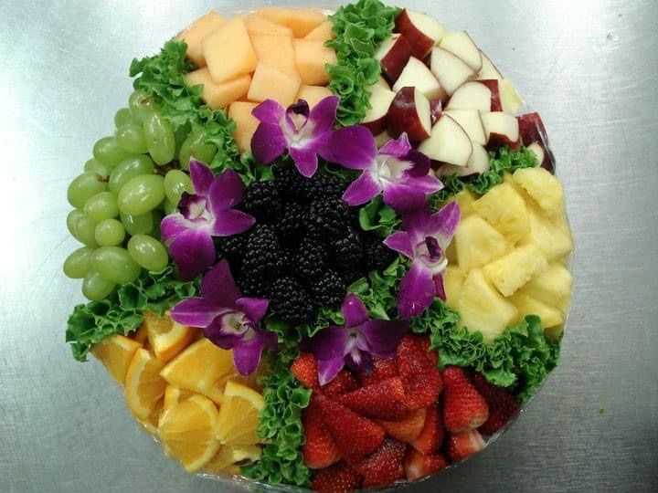 Sweet seasonal fruits paired with an assortment of gourmet cheeses, arranged together for a balanced and crowd-pleasing tray. A great choice when you want variety without overthinking it.